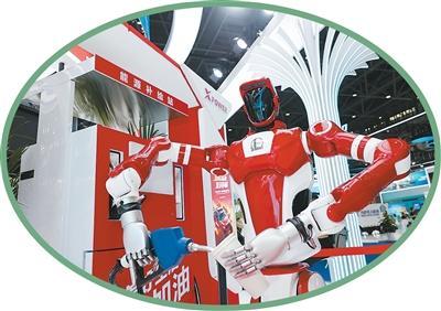 在第六届消博会科技消费展区,中国石化展台展示机器人加油。新华社记者 高静 摄