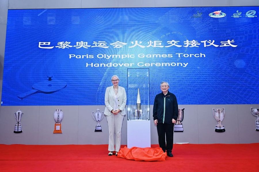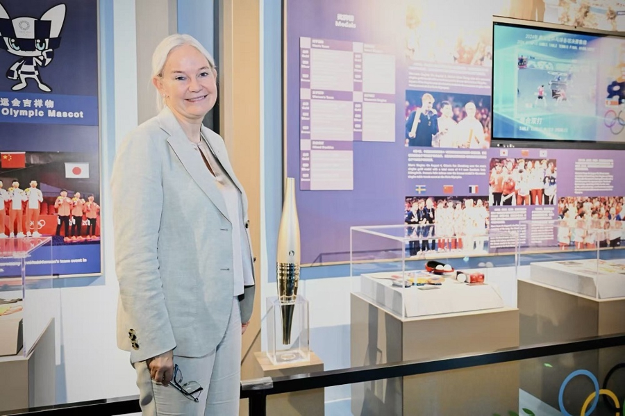 此次造访上海,索林的主要目的就是参观国际乒联博物馆/中国乒乓球博物馆。与此同时,作为国际奥委会委员,她还亲手为这座场馆带来了象征奥林匹克精神的2024年巴黎奥运会火炬。